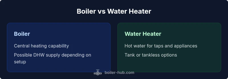 A boiler is designed to heat a home through a hydronic distribution system and may also provide domestic hot water. A water heater focuses on delivering hot water for taps and appliances, with no primary role in space heating in most configurations.