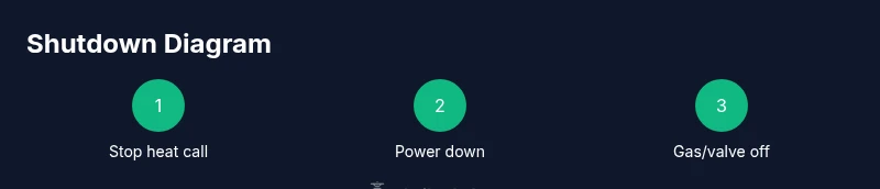 Begin by stopping the heat call in the thermostat, then proceed with a controlled shutdown of power and fuel as applicable. This reduces the risk of unintended relights during maintenance.