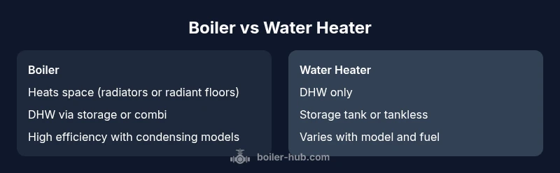 A boiler can heat space and water, powering a central heating system, while a water heater primarily provides domestic hot water. Your choice depends on whether you need heating in addition to hot water.