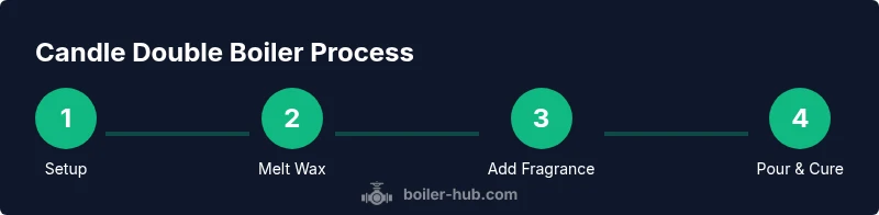 The candle double boiler is a controlled heating method for melting wax using two nested vessels. The lower pot holds simmering water; the upper pot or bowl rests above it, gently warming the wax with indirect heat. This setup prevents direct contact with flame, reduces the risk of scorching, and provides a smoother melt—critical for even fragrance distribution and clean curing. According to Boiler Hub, the double boiler technique minimizes hot spots and helps maintain consistent temperatures during the melt. For hobbyists and facility managers alike, this translates to safer handling and better outcomes. Whether you’re making small jars or larger pillar candles, the principle remains the same: the water bath acts as a buffer that steadies heat and protects sensitive additives. In practice, you’ll see wax enter a clear, nearly translucent state as it reaches the desired pouring temperature, typically between 170–190 Fahrenheit depending on wax type. Always monitor and adjust heat to avoid large temperature swings.