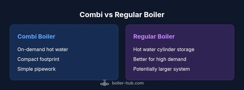 A boiler is a central heating appliance that heats water and provides warmth to radiators. A combi boiler, short for combination boiler, is a compact unit that heats water on demand directly from the mains, eliminating the need for a separate hot water cylinder. According to Boiler Hub, the main distinction lies in how water is heated, stored, and distributed throughout the home. In practice, homeowners encounter two broad families: on-demand systems (combi) and stored-water systems (regular/standard or system boilers). Both achieve the same end—comfortable indoor temperatures—but the path to that comfort differs in design, installation, and usage patterns. Understanding these differences is essential before choosing or upgrading a boiler.