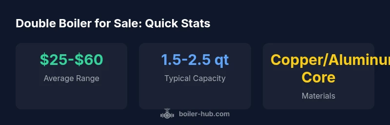 According to Boiler Hub, the best double boiler for sale in 2026 balances heat distribution, durability, and price. Most shoppers prioritize stainless steel with a copper or aluminum core for even heating, a snug lid, and a 1.5–2.5 quart capacity. Expect price ranges roughly from $25 to $120 depending on brand and features.
