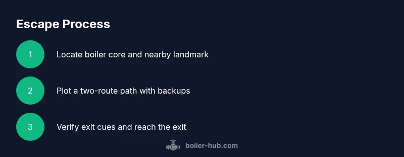 According to Boiler Hub, escaping the backrooms boiler room map requires a deliberate, step-by-step approach. Start by identifying the boiler core and major ventilation shafts, then chart a safe route to the exit while conserving light and avoiding hazards. Gather essential gear, stay alert to environmental cues, and time your moves with power cycles. A calm, methodical plan improves your odds of success.