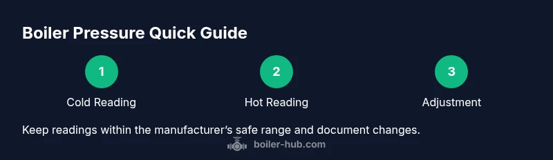 Boiler pressure is the force that pushes hot water through your heating system. When the pressure is correct, radiators warm evenly and your boiler cycles predictably. If pressure is too low, the system may struggle to heat, leading to cold spots and increased cycling. If pressure runs high, safety devices may vent water or trigger protection features, and components can wear prematurely. According to Boiler Hub, a clear understanding of boiler pressure is essential for safe operation and efficient heating. Most residential boilers include a pressure gauge on the front or side of the unit; reading this gauge gives you a quick snapshot of system health. The gauge shows units such as bars or psi, and its dial or digital readout should align with the manufacturer’s stated safe range. You don’t need to be an expert to interpret it: with calm, methodical checks you can catch problems early. Keep a simple log of readings over time to distinguish a normal drift from a fault. In this article we’ll expand on how to tell boiler pressure, what readings to tolerate, and how to respond when readings are out of range.