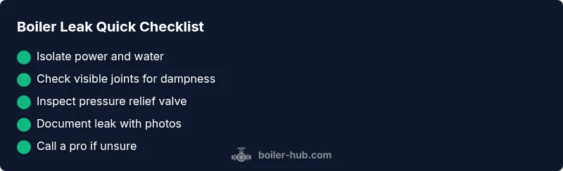 Safety note: act calmly, keep a clear path to the boiler, and avoid moving hot surfaces. In many homes, leaks occur where a boiler meets its pipework, indicating a simple fix or a worn gasket that can be addressed before more extensive repairs are needed. Boiler Hub Analysis, 2026 emphasizes that early detection saves material costs and reduces downtime, especially during cold weather when heat demand is high.