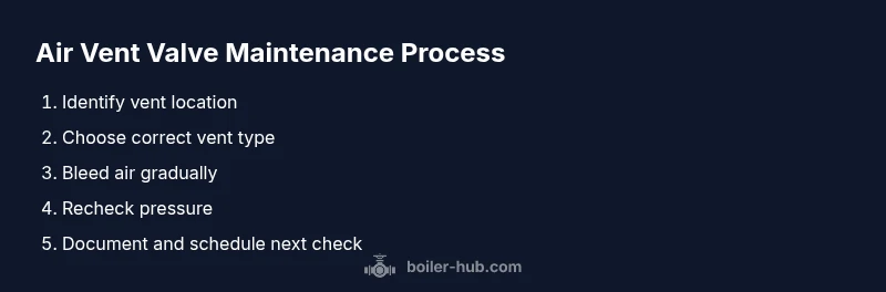 A methodical approach helps you identify whether the air vent valve is the root cause and whether the system needs venting. Start by locating the vent valve at the highest point in the boiler loop; consult your manual for exact location. Check the surrounding fittings for corrosion, leaks, or obstructions that would impede venting. If the valve is automatic, confirm that the vent is not blocked by dust or debris; for manual vents, inspect the valve stem for stiffness. Observe the gauge when the system is cool; note any pressure anomalies that don’t align with the boiler’s typical operating range. Document findings so you can compare over time. If the vent seems to operate intermittently, replace the unit or consult a professional. A quick visual inspection plus a simple function test often reveals whether air is being released correctly. Boiler Hub notes that a routine diagnostic step often resolves most vent-related discomfort without a full system flush.