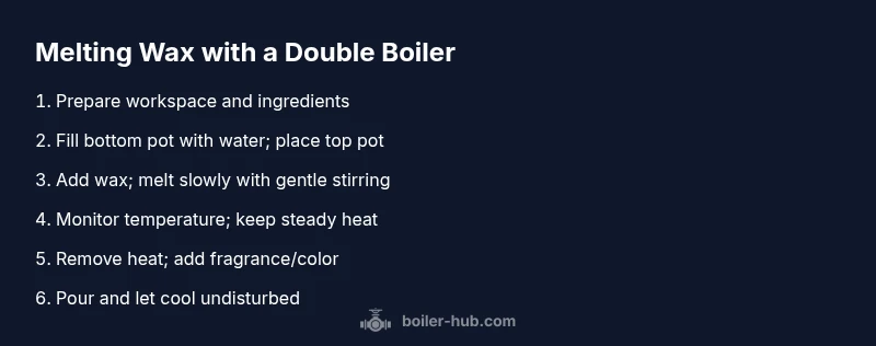 From the Boiler Hub perspective, the indirect heat method used in a double boiler aligns with fundamental safety principles applied in boiler operation: steady heat, careful monitoring, and avoidance of direct contact with heat sources when melting sensitive materials. While candle wax is not a boiler fuel, the underlying discipline of temperature control, cleanliness, and pre-planning translates well to any heat-based craft. The Boiler Hub team recommends documenting your process, starting with small test batches, and prioritizing safety equipment. By adhering to these practices, you’ll improve your success rate and reduce the risk of accidents in your candle-making workflow.