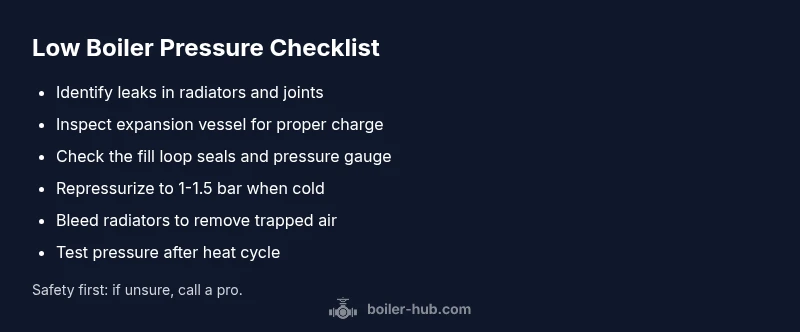 Learn a safe, practical, step-by-step guide to diagnose and fix low boiler pressure from Boiler Hub, with actionable checks, repressurizing steps, and professional help when needed.