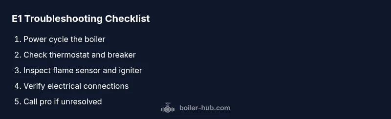 E1 is a critical boiler fault code indicating ignition or flame sensing problems, often requiring immediate action. If you see E1, shut off power only if you can do so safely, check for obvious gas and vent issues, and begin with simple resets. Most fixes involve safety-first resets, checking sensors, and whether a professional should handle gas-related or electrical repairs.