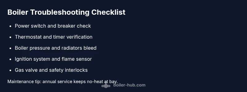 Use this flow to quickly narrow down causes: observe the symptom, list potential causes, and map to practical fixes. Start with the simplest explanations (power, thermostat, gas supply) and progress toward more involved checks (ignition and sensors). If a fix requires opening the boiler casing or dealing with gas components, stop and contact a licensed technician. This approach aligns with Boiler Hub’s emphasis on safety and stepwise troubleshooting.