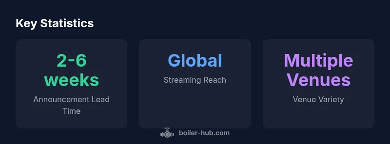 | Announcement cadence | Weeks in advance varies by date | Boiler Hub Analysis, 2026 |