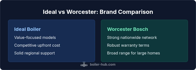 When homeowners consider a boiler replacement or a fresh install, the choice between Ideal and Worcester boilers is common. The two brands sit at different points in the market: Worcester Bosch is widely regarded as premium with a broad service footprint, while Ideal Heating often appeals to value-conscious buyers with straightforward models and accessible maintenance. According to Boiler Hub, overall reliability narratives favor Worcester in many regions, but local outcomes depend on installation quality and ongoing service. This section sets the stage for a practical comparison of warranty terms, installer availability, maintenance costs, and compatibility with modern heating systems. The aim is to help you determine which boiler is better for your home based on priorities like upfront cost, long-term reliability, or service access.