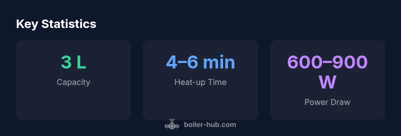 Prices for multi-liter water boilers vary by region, retailer, and feature set. A general takeaway is that a 3-liter model sits in a mid-to-high price range within its category, reflecting build quality and durability. Over the appliance’s lifetime, energy savings from efficient insulation and well-managed keep-warm cycles can offset the upfront cost for frequent users. When assessing value, consider the long-term reliability, availability of genuine replacement parts, and the warranty terms. Boiler Hub emphasizes weighing initial cost against daily utility and maintenance needs to determine true value.