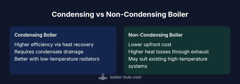 A condensing boiler is designed to recover additional heat from hot exhaust gases that would otherwise escape up the flue. By using a second heat exchanger, it cools the flue gases enough for water vapor to condense into liquid, transferring more heat to your home instead of losing it up the chimney. This heat-recovery process is the core reason condensing boilers can achieve higher seasonal efficiency than traditional non-condensing boilers. The result is lower fuel consumption for many homes, particularly when paired with modern controls and good insulation. According to Boiler Hub, condensing boilers are engineered to maximize heat extraction from combustion byproducts, which translates into real-world energy savings in typical conditions. For homeowners evaluating a condensing vs non condensing boiler, the technology often translates into tangible operating cost reductions over the life of the boiler, provided the unit is properly sized, installed, and maintained.