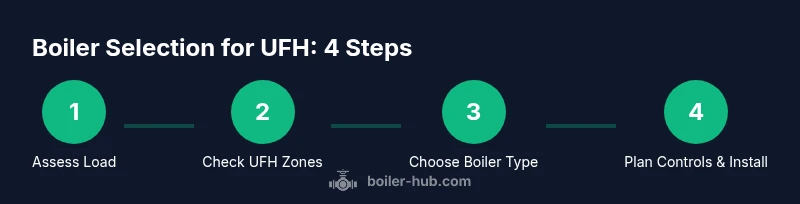 Underfloor heating (UFH) delivers warmth through embedded pipes or mats, circulating water at modest temperatures. The boiler you choose must be capable of delivering sufficient heat at those lower water temperatures while keeping energy efficiency high. In practice this means prioritizing condensing, modulating boilers, and ensuring good flow temperature control. According to Boiler Hub, accurate heat-load assessment and system design are essential for comfort and efficiency in radiant floor setups. By aligning boiler output with UFH needs, you avoid oversizing that wastes fuel and undersizing that leaves rooms cold. This section explains the core concepts and how they influence boiler selection.