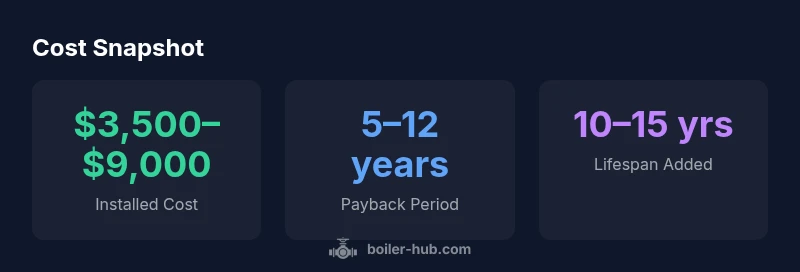 Costs vary by boiler type, size, and labor. Typical installed range is between $3,500 and $9,000, with higher-end systems going beyond. Always obtain multiple quotes to confirm scope.