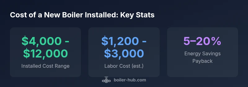 The installed cost for a new boiler typically ranges from $4,000 to $12,000, depending on boiler type, efficiency, and installation complexity. This figure includes equipment, labor, and basic venting or piping work. In 2026, higher-end models or complex installs can push costs beyond this range, while simple replacements are on the lower end. (Source: Boiler Hub Analysis, 2026)