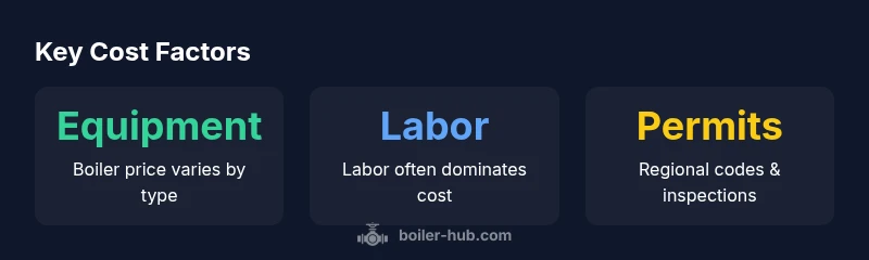 When estimating install new boiler cost, distinguish three core buckets: equipment, labor, and ancillary work. Equipment includes the boiler itself, controls, and any storage or buffer tanks. Labor covers the installer’s time, permit handling, and any on-site adjustments. Extras can include old unit removal, venting upgrades, gas line modifications, drainage, and electrical work. Real-world estimates show that while the boiler price is a fixed quote, labor and extras vary with contractor practices and local codes. Boiler Hub Analysis, 2026, notes that the sum of these variables determines the final invoice. A simple rule: ask for itemized quotes that show equipment costs separately from labor and extras, so you can compare apples to apples and spot unnecessary add-ons.