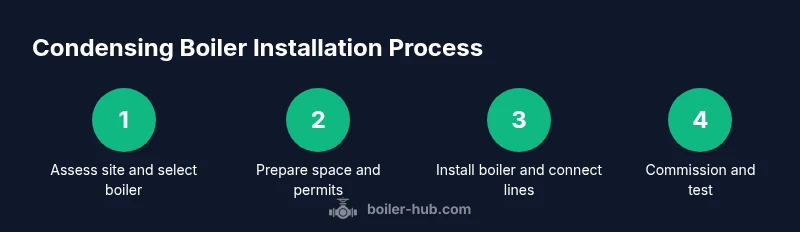 mediaPipeline":{"heroTask":{"stockQuery":"gas condensing boiler in utility room","overlayTitle":"Condensing Boiler Install","badgeText":"2026 Guide","overlayTheme":"dark"},"infographicTask":{"type":"process","htmlContent":"<div class="w-[800px] p-8 bg-slate-900 text-white"><h3 class="text-2xl font-bold mb-4">Condensing Boiler Installation Process</h3><div class="space-y-4"><div class="flex items-center"><span class="w-10 h-10 rounded-full bg-emerald-500 text-center text-white">1</span><div class="ml-3">Assess site and select boiler</div></div><div class="flex items-center"><span class="w-10 h-10 rounded-full bg-emerald-500 text-white">2</span><div class="ml-3">Prepare space and obtain permits</div></div><div class="flex items-center"><span class="w-10 h-10 rounded-full bg-emerald-500 text-white">3</span><div class="ml-3">Install unit, venting, condensate lines</div></div><div class="flex items-center"><span class="w-10 h-10 rounded-full bg-emerald-500 text-white">4</span><div class="ml-3">Commission and test</div></div></div></div>","altText":"Process diagram showing the steps to install a condensing boiler","caption":"Step-by-step process for installing a condensing boiler"}},